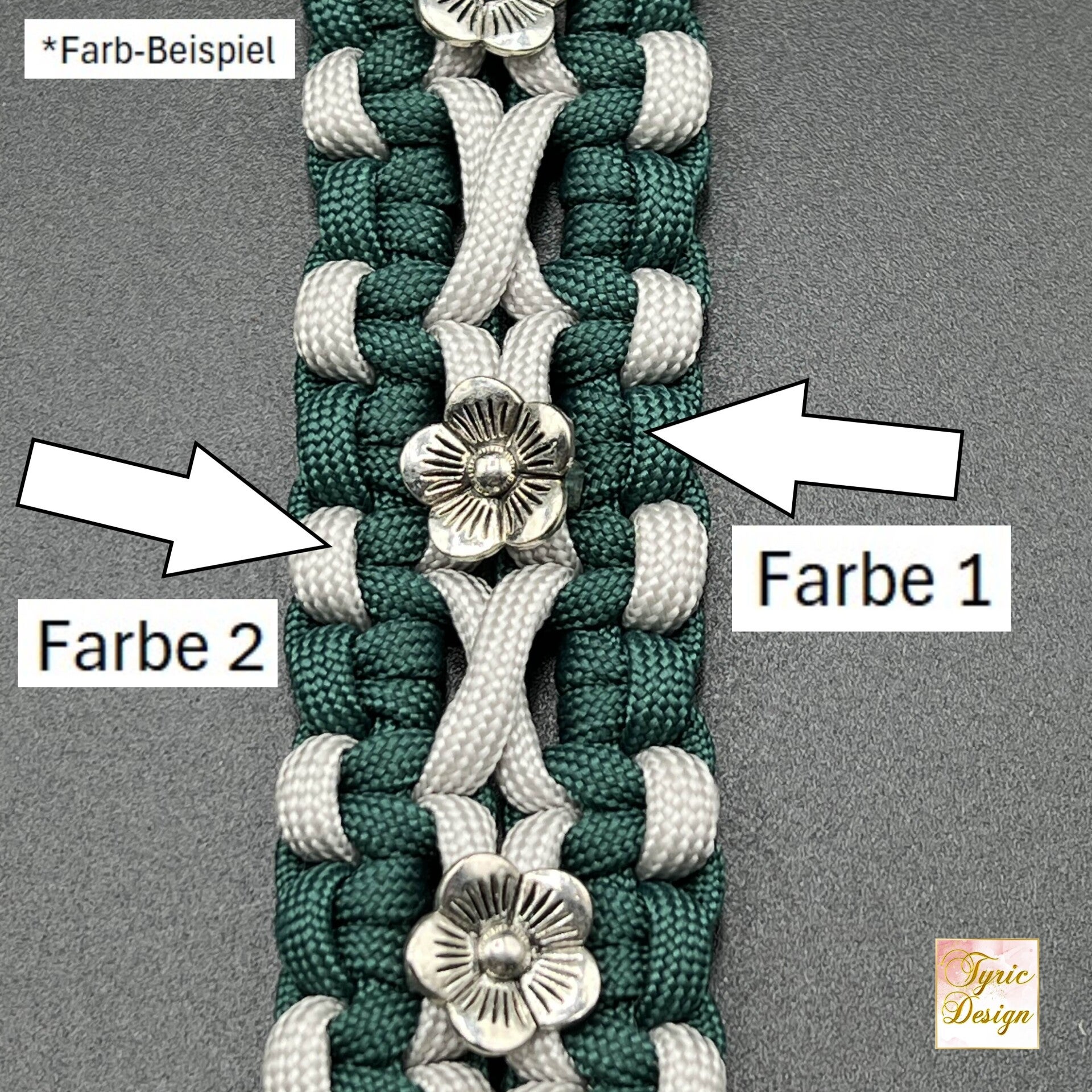 In den Fotos seht ihr auch eine Nummerierung des Paracords in dem Halsband. Bitte gebt also genau an, was ihr als Farbe 1 und Farbe 2 haben möchtet.