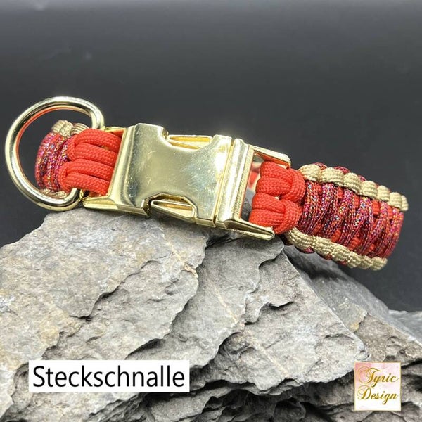 Hier bekommst du ein stabiles Paracord-Halsband für deine Fellnase. Du kannst bei diesem Halsband zwischen 3 verschiedenen Verschluss-Möglichkeiten wählen: Steckschnalle, Biothane-Adapter oder Zug-Stop. Die Herstellung erfolgt individuell nach gewünschter Grösse und welchen Verschluss du möchtest.