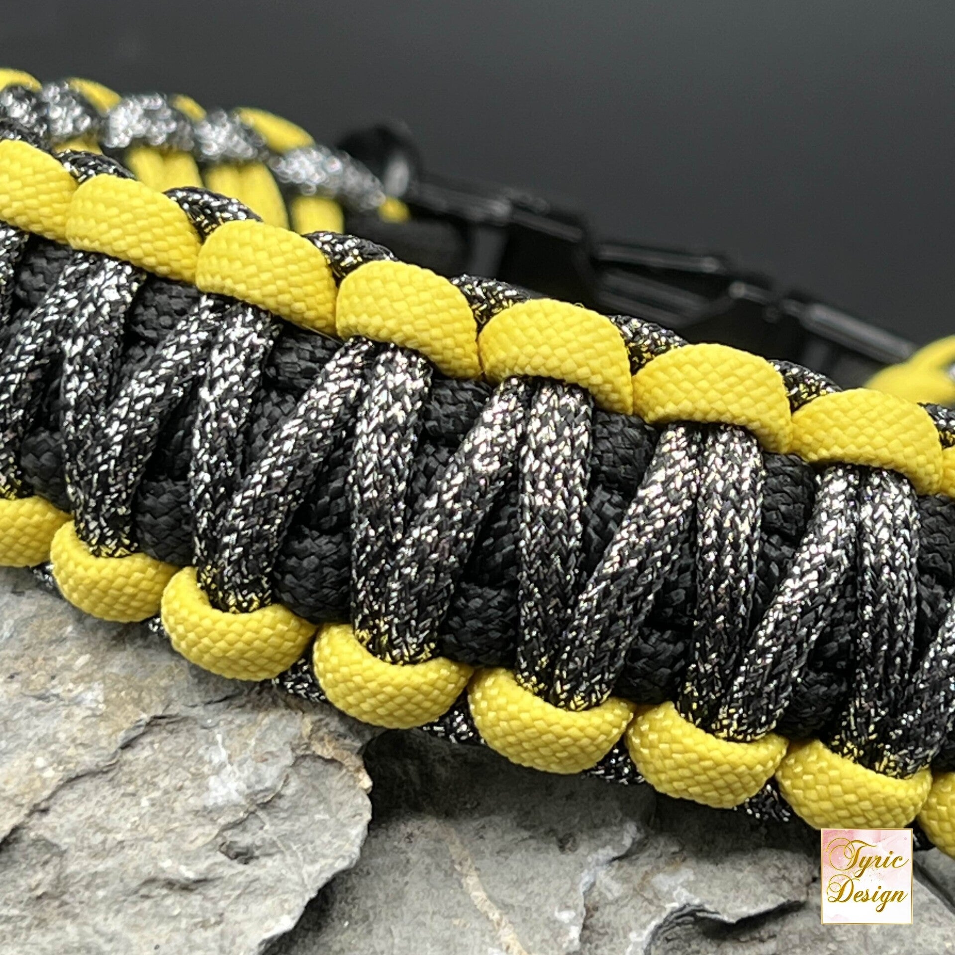 Die Farbkombination "The Badger" ist in Schwarz und Gelb gehalten. Der Clou: Das Paracord, welches waagerecht über die Oberseite verläuft, glitzert!