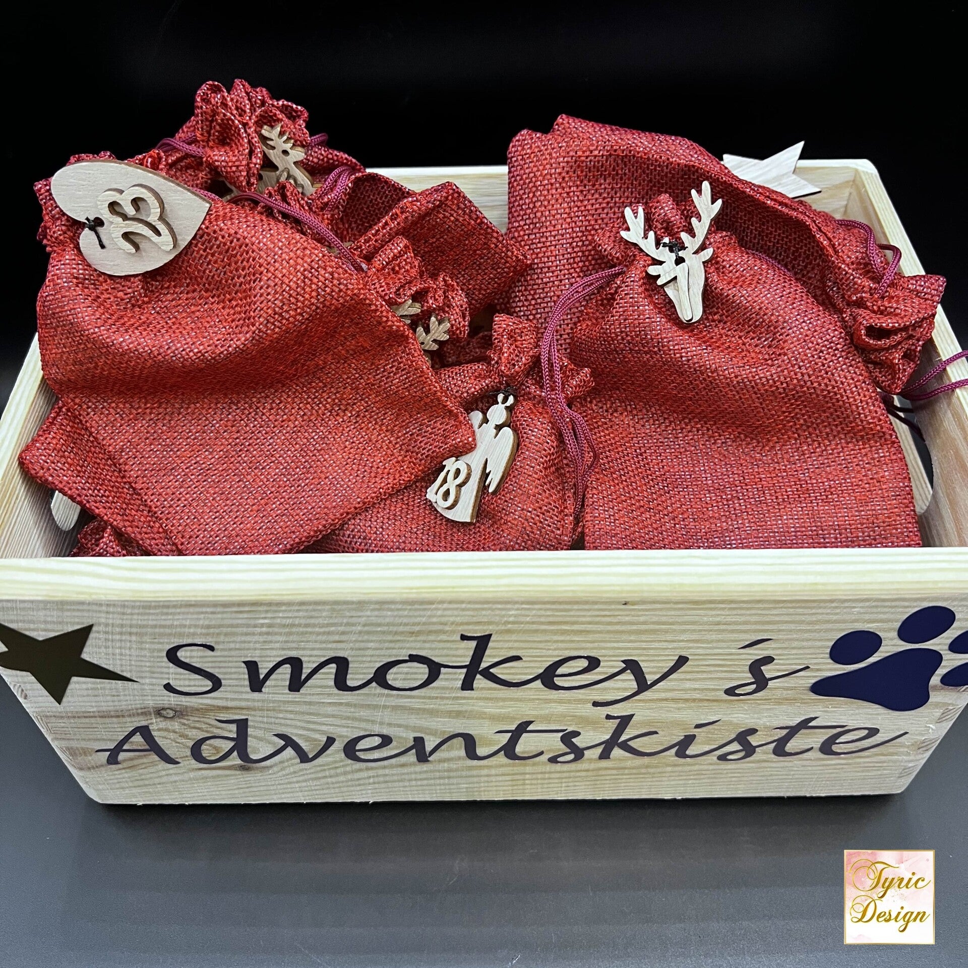 Adventskiste mit wiederverwendbaren Jute-Beutelchen – Nachhaltig genießen, jeden Dezember neu befüllt