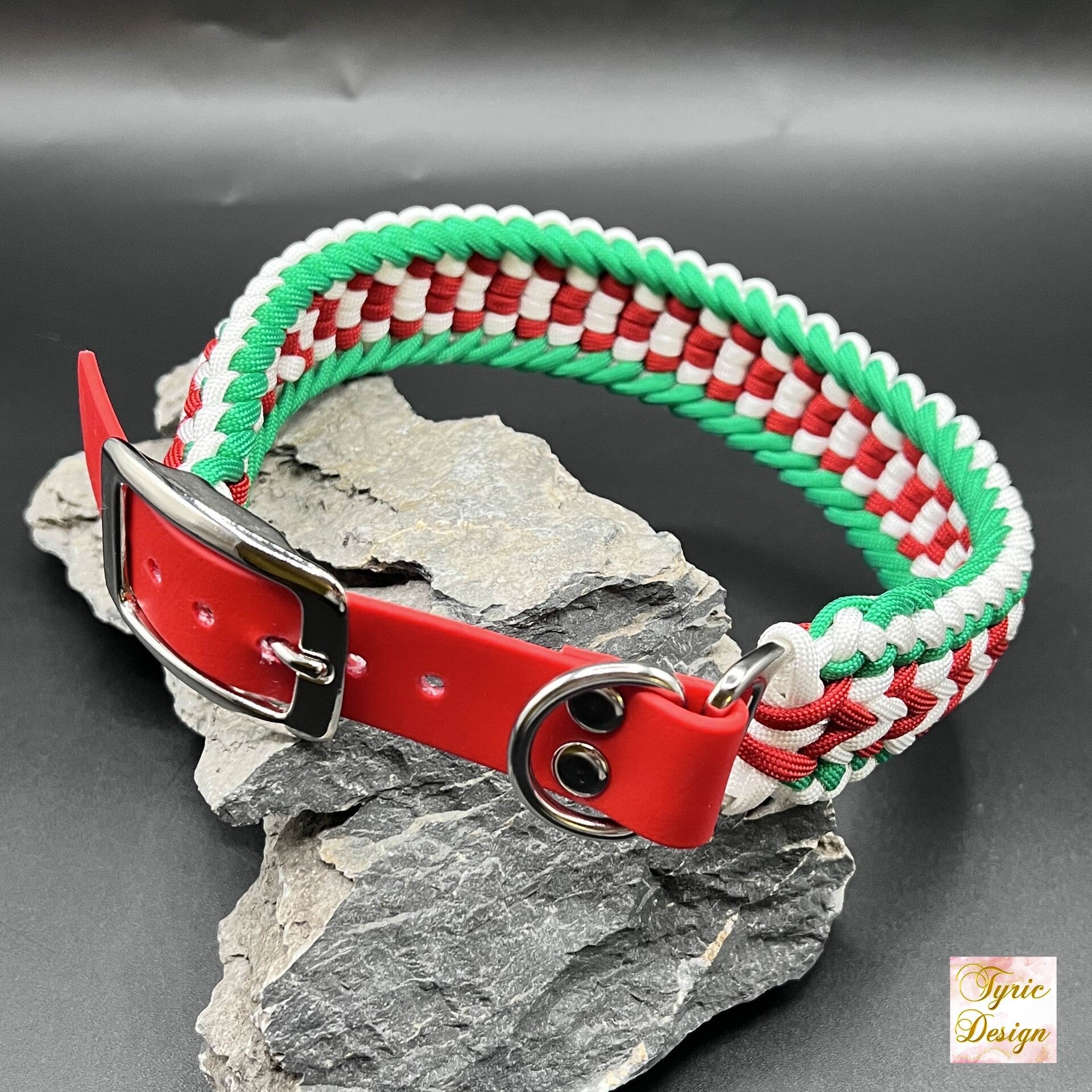 Unser Paracord-Halsband "X-Mas" ist eines der saisonalen Halsbänder und nur bis Ende Februar erhältlich!! Es präsentiert sich in den typischen Weihnachtsfarben und silberfarbener Hardware.
