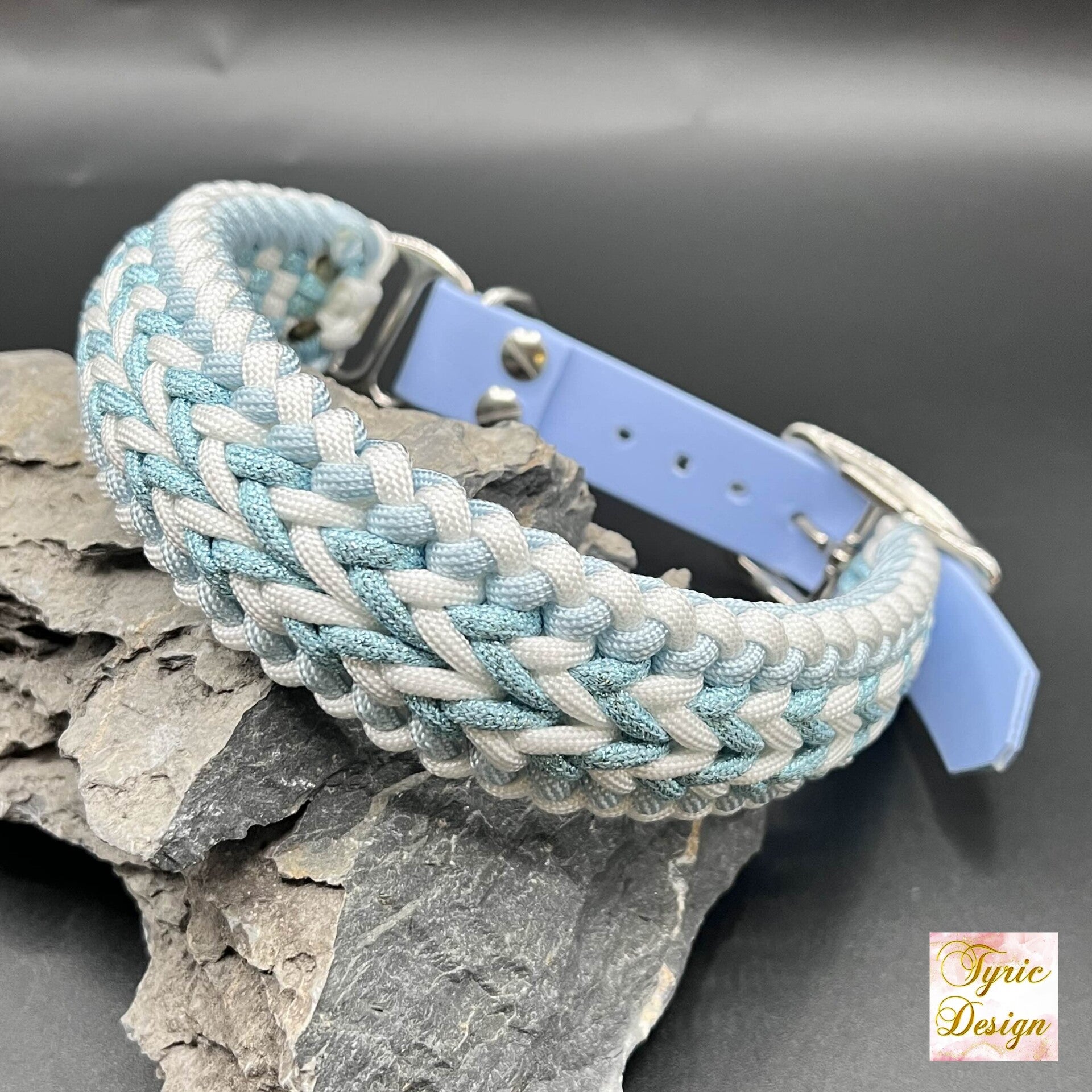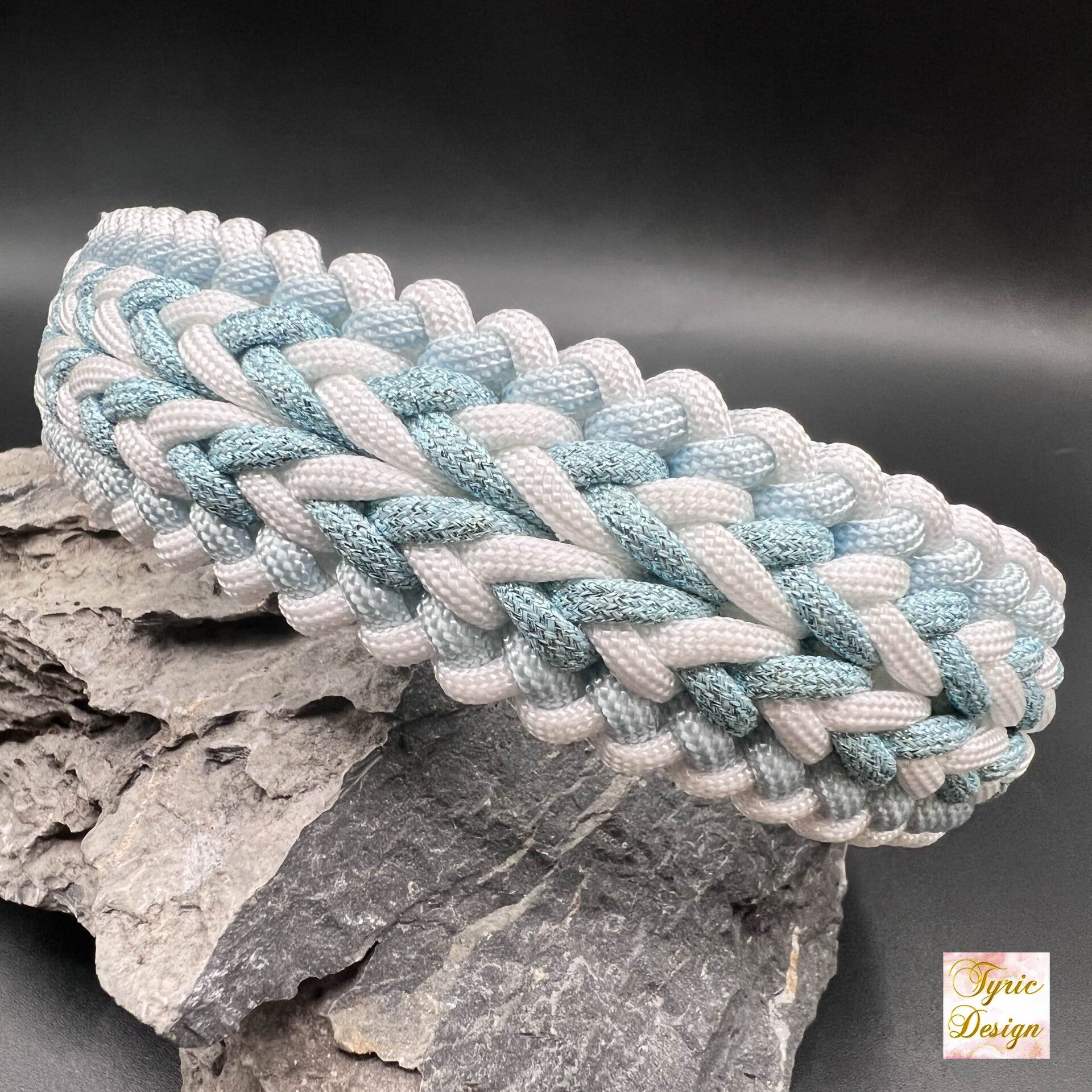 Unser Paracord-Halsband "Snow Wonderland" ist eines der saisonalen Halsbänder und nur bis Ende Februar erhältlich!! Es präsentiert sich in Polar-Blau und Weiss mit Glitzer-Paracord und silberfarbener Hardware.