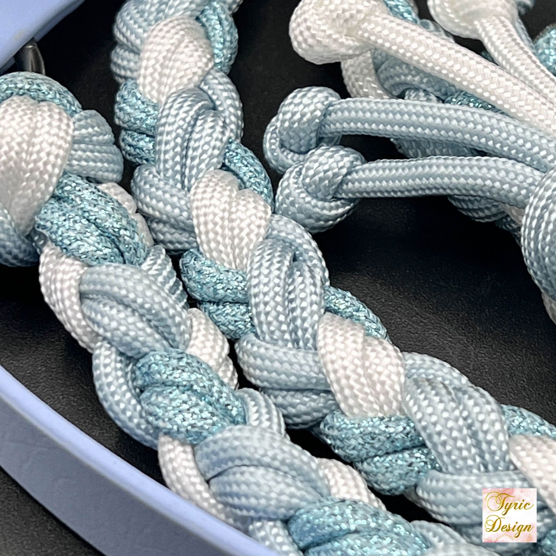 Unser Komplett-Set, bestehend aus Halsband und Leine, präsentiert sich in Polar-Blau und Weiss mit Glitzer-Paracord. Da es ein saisonales Set ist, ist es lediglich bis Ende Februar erhältlich.