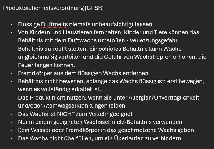 Die Duftmelts wurden bereits hergestellt und werden nach Bestellung innerhalb von 1-2 Tagen versendet.
