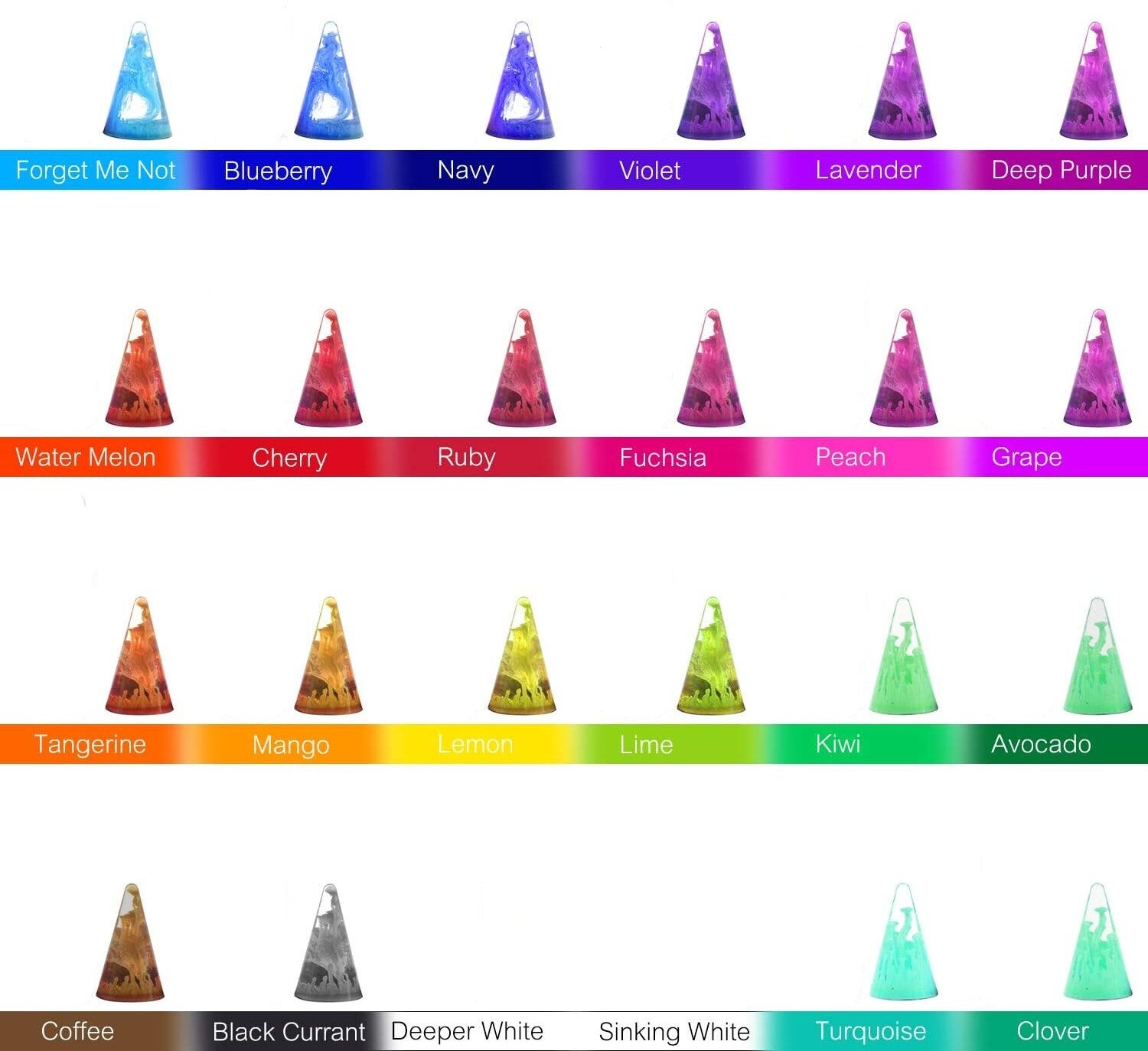 - Alkohol Inc-Farben können einen Effekt in Form von einer Art farbigen Rauch im Epoxidharz hervorrufen. Da die Farben in das klare Resin eingeträufelt werden, kann man den Effekt nicht auf eine spezifische Stelle fixieren - Resin lebt und trägt die Farbe weiter